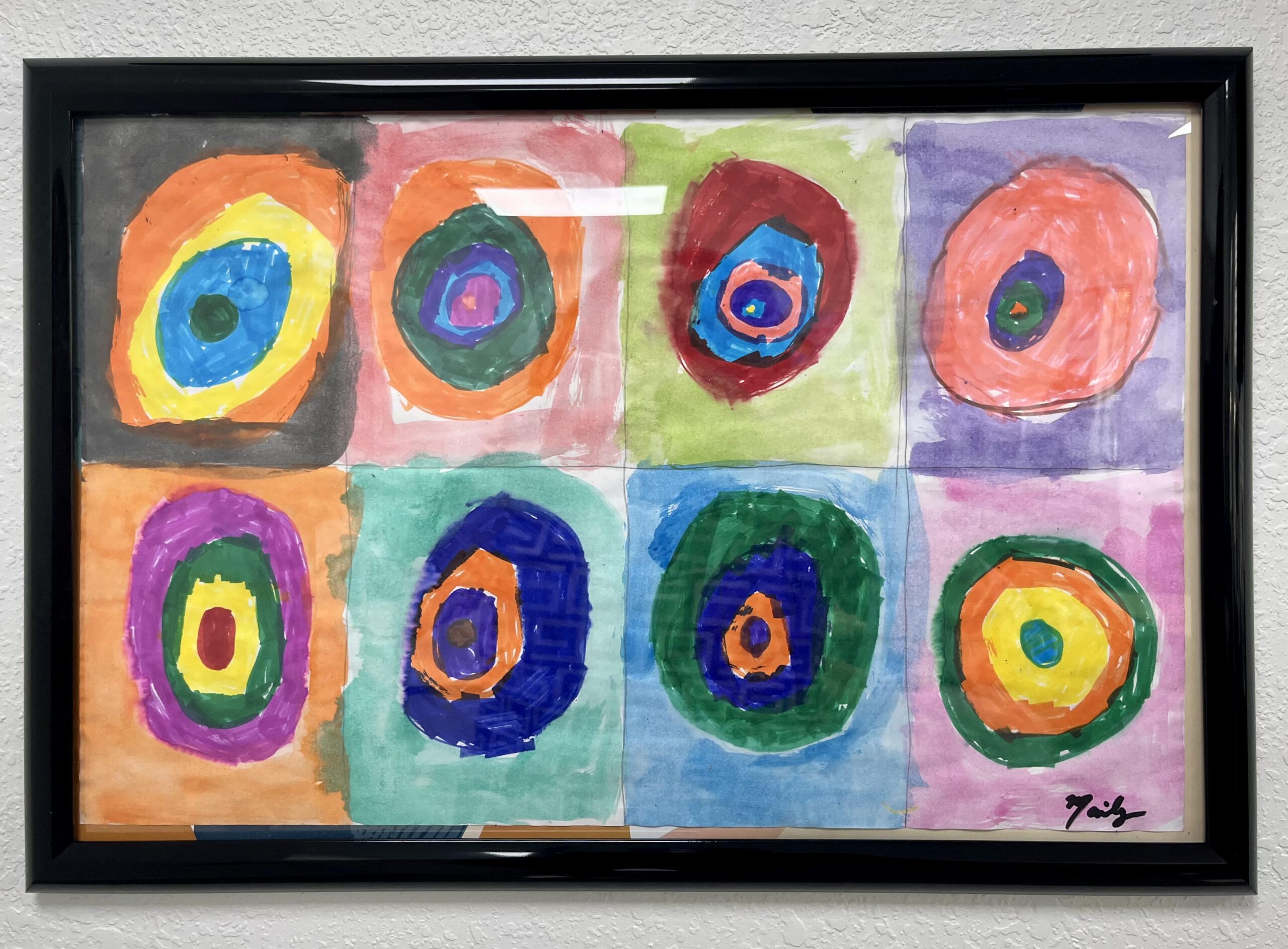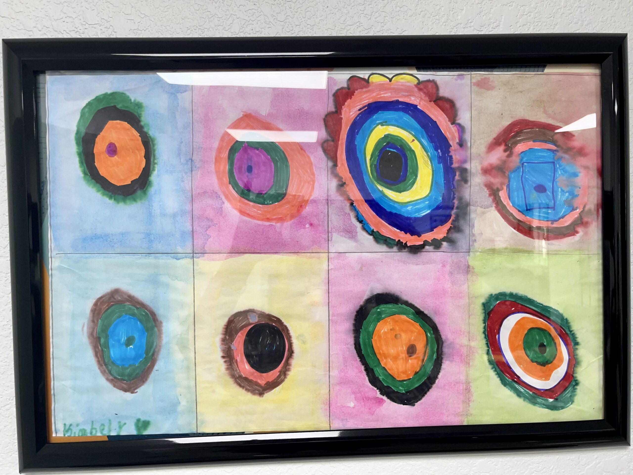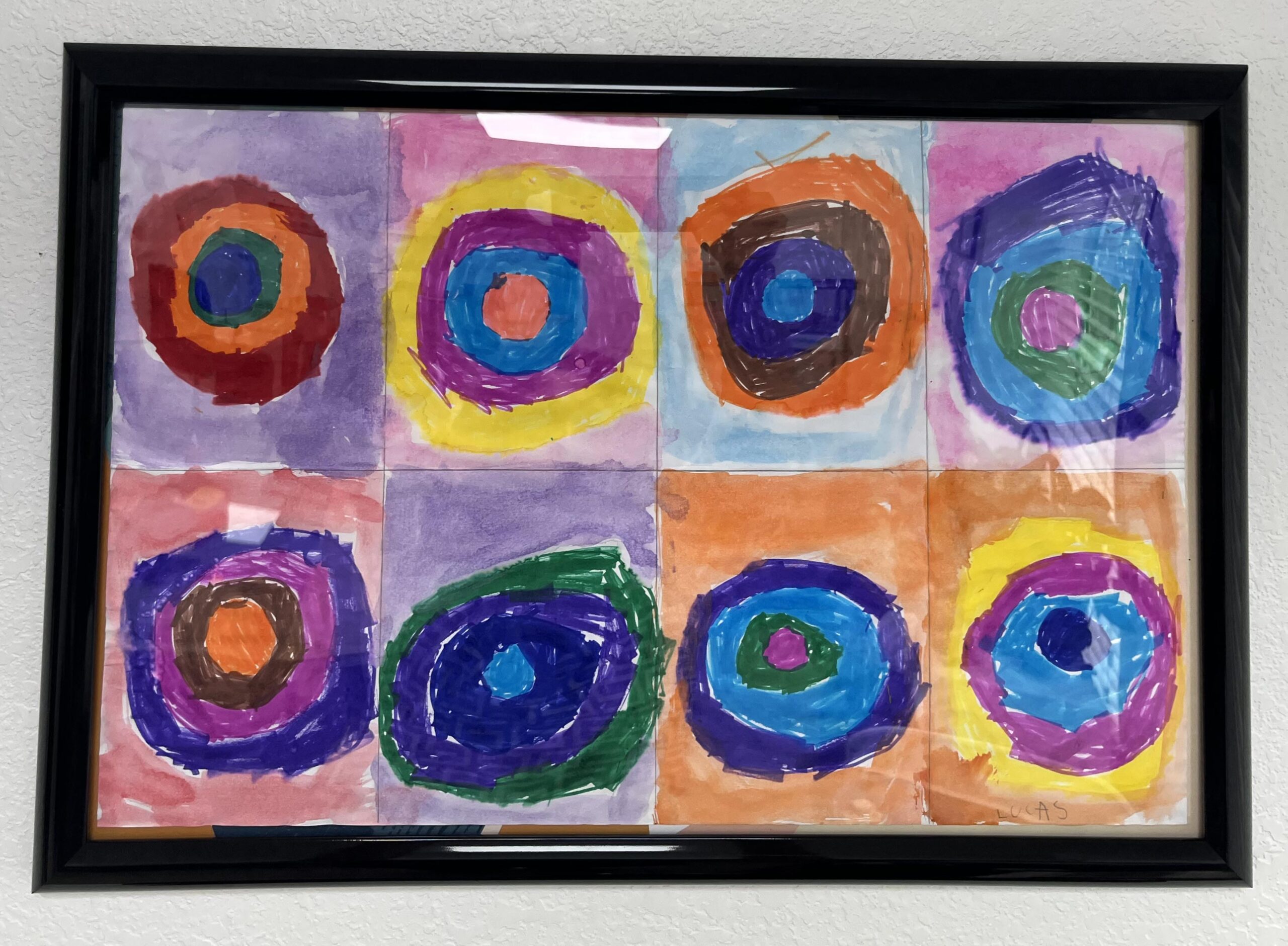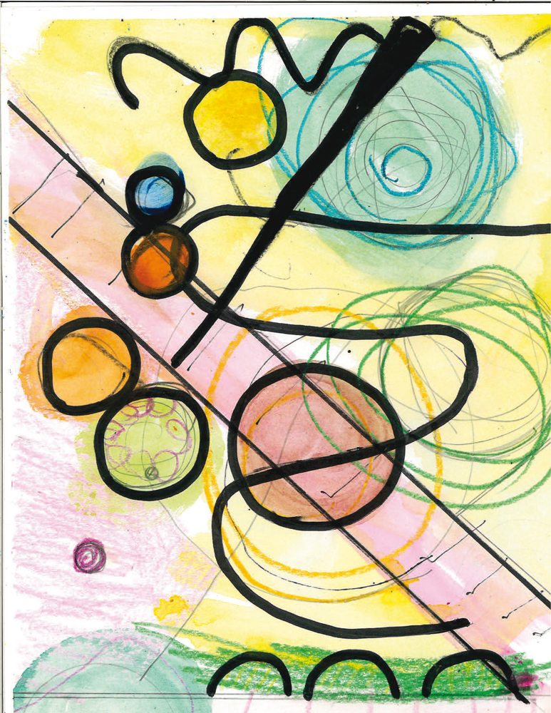 Kandinsky circles watercolor+marker on paper