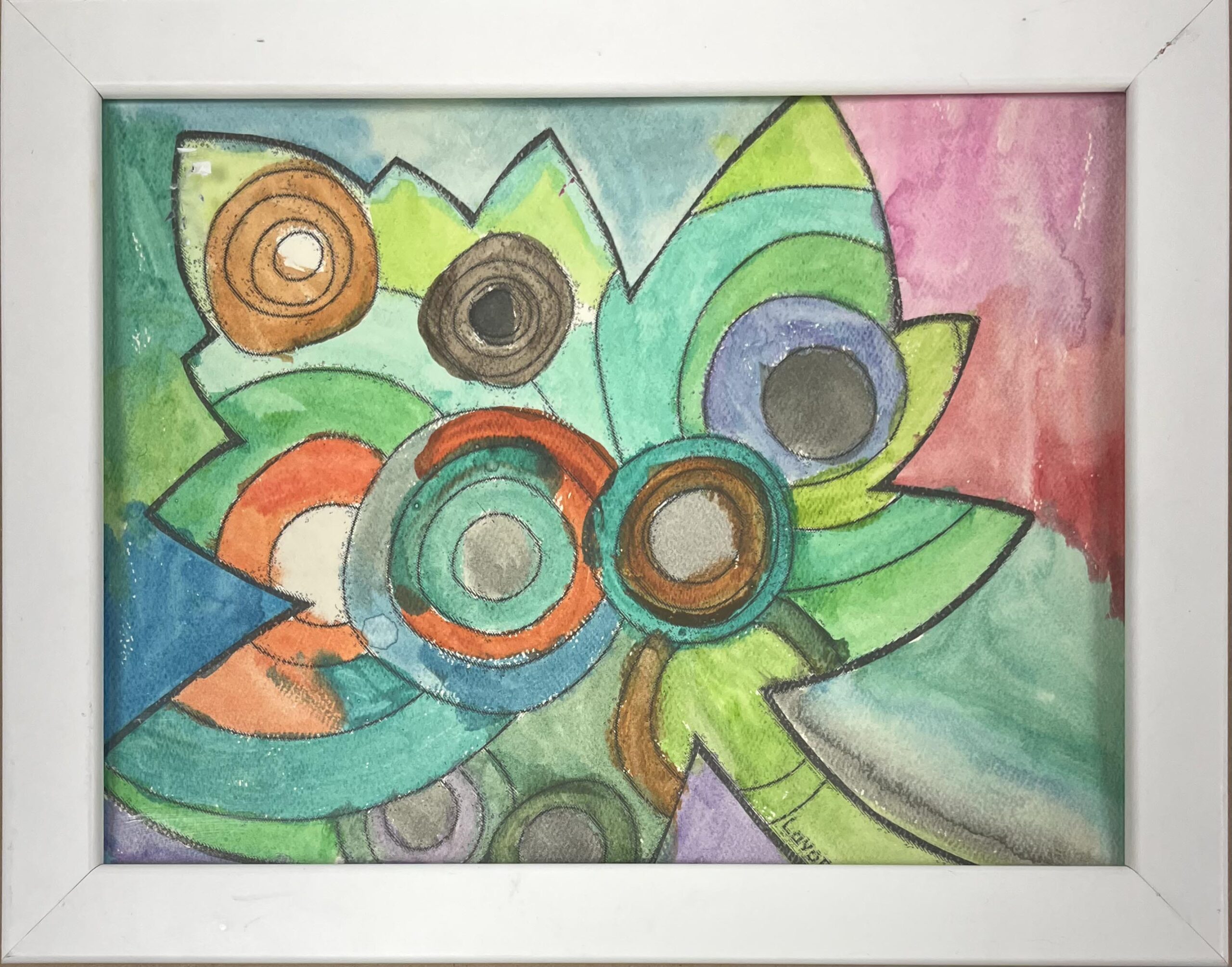 Kandinsky Circles watercolor + Marker on paper