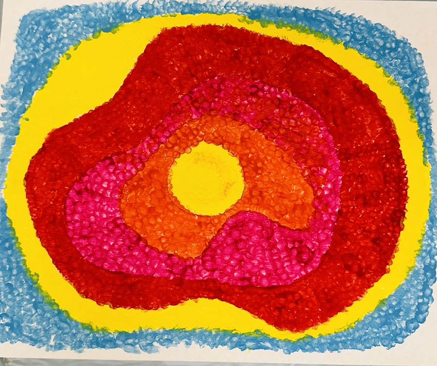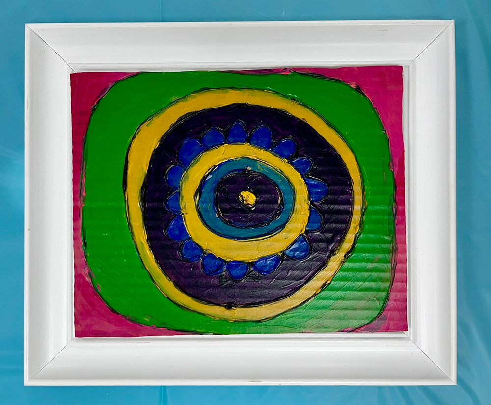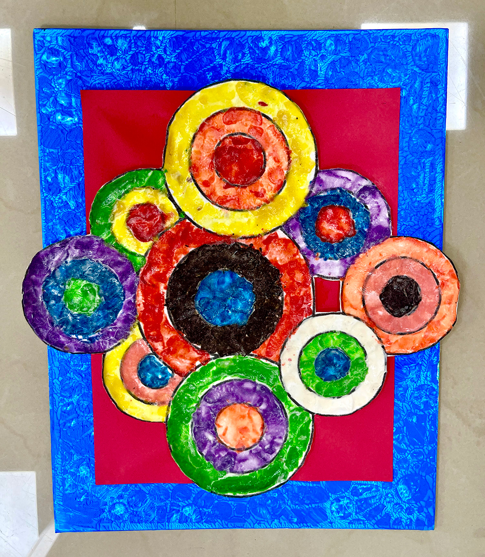 Kandinsky Series, Concentric circles clay on paper and canvas - Kimberly