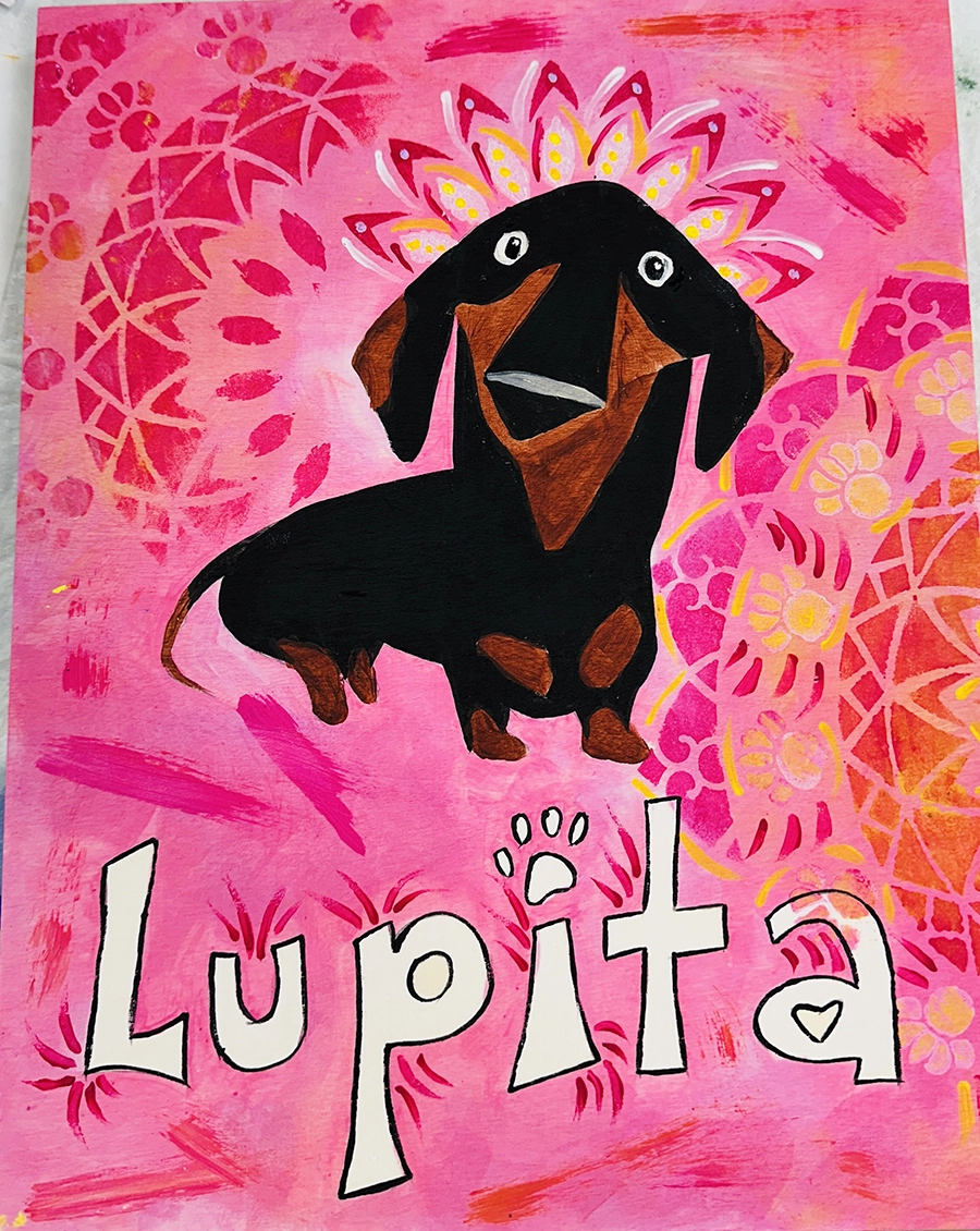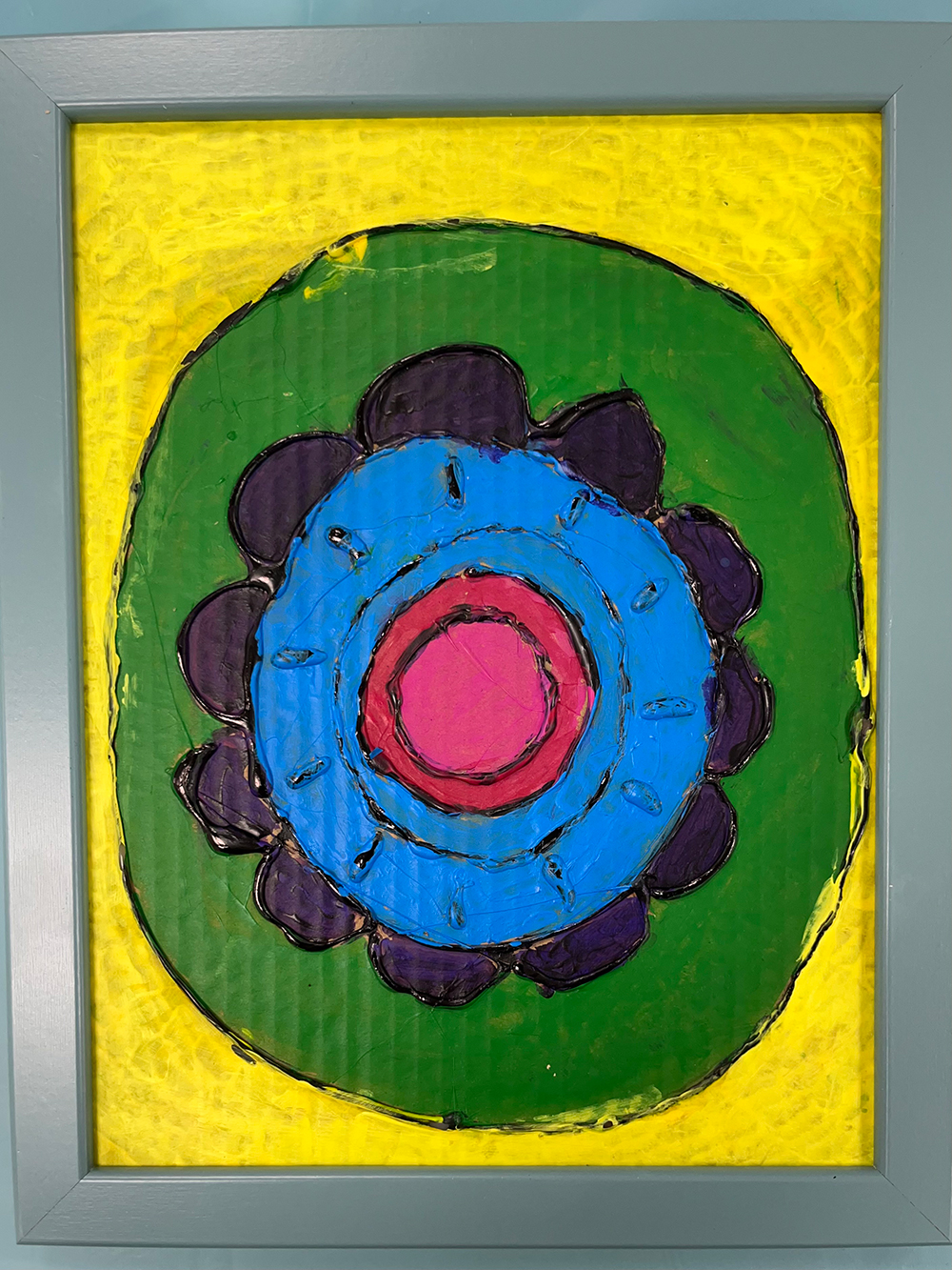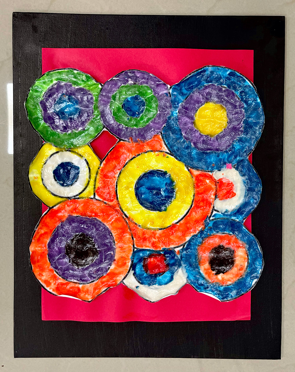 Kandinsky Circle, Acrylic on cardboard green on magenta