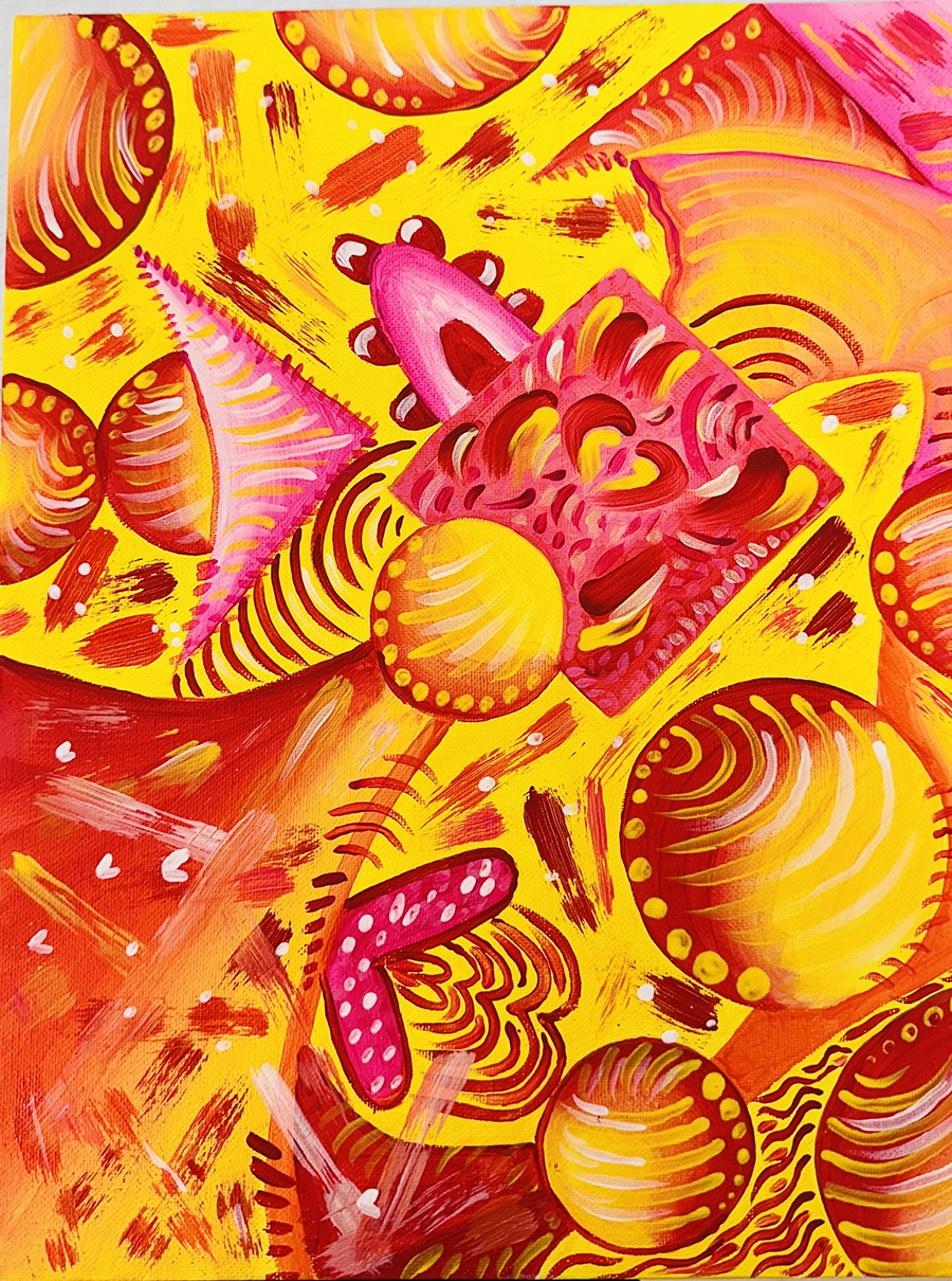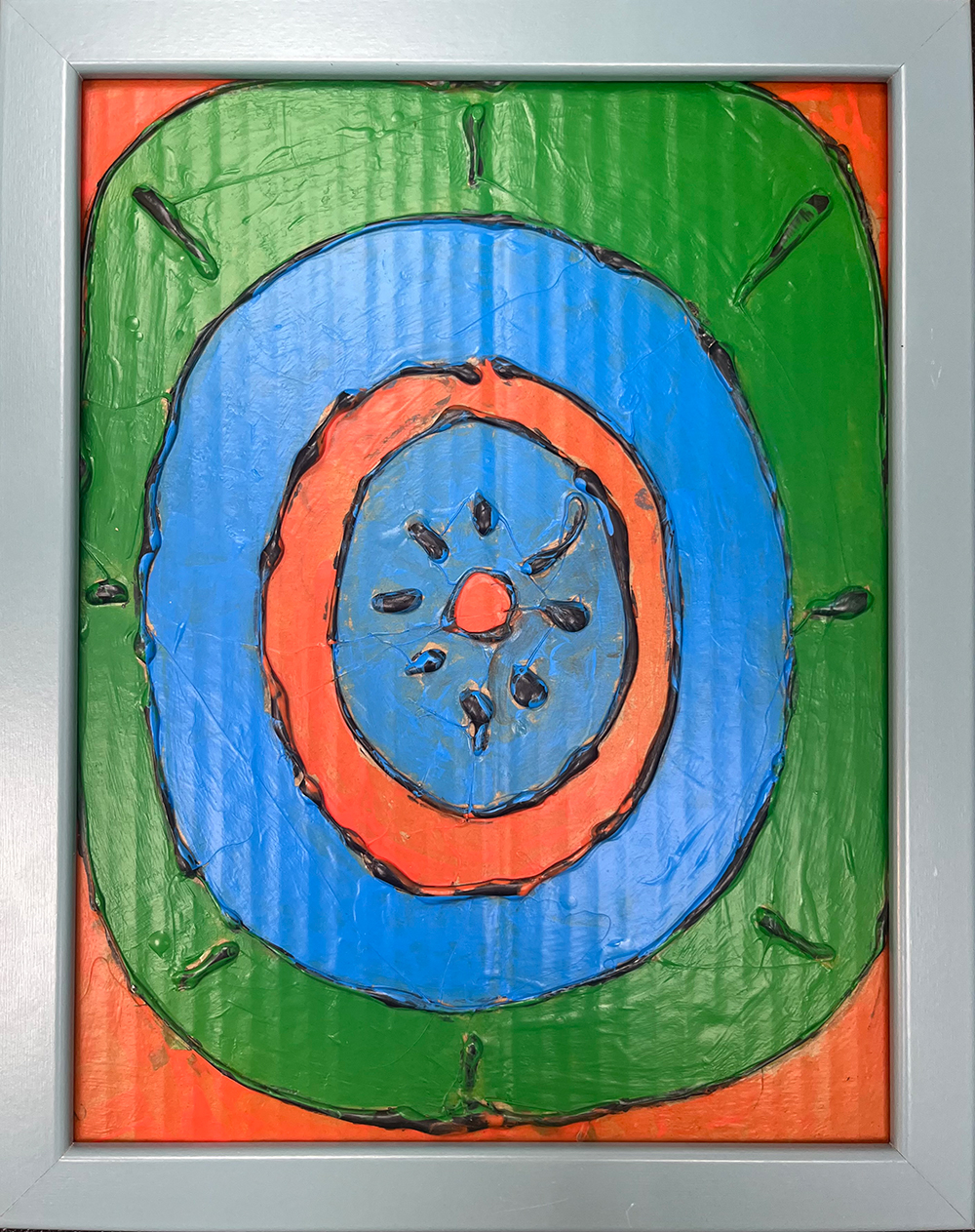 Kandinsky Series, Acrylic on cardboard green on orange