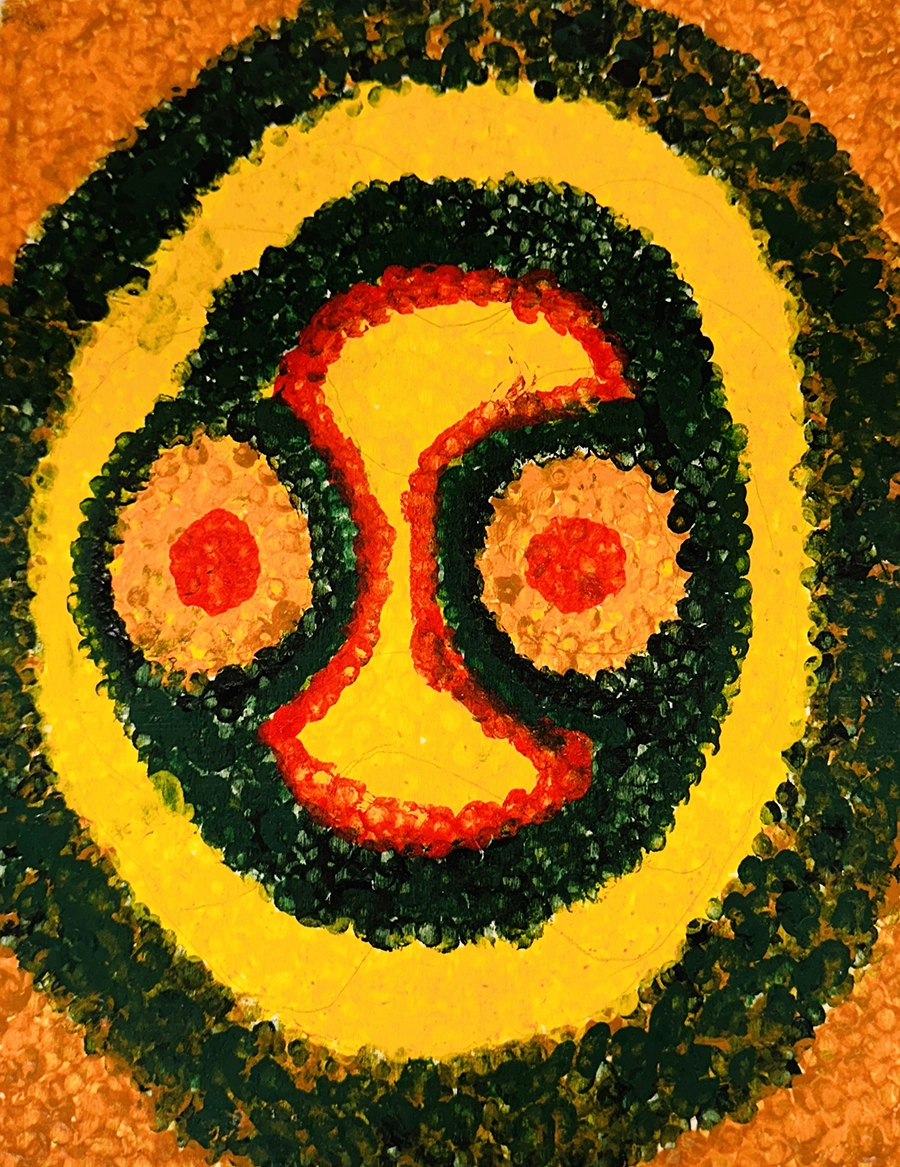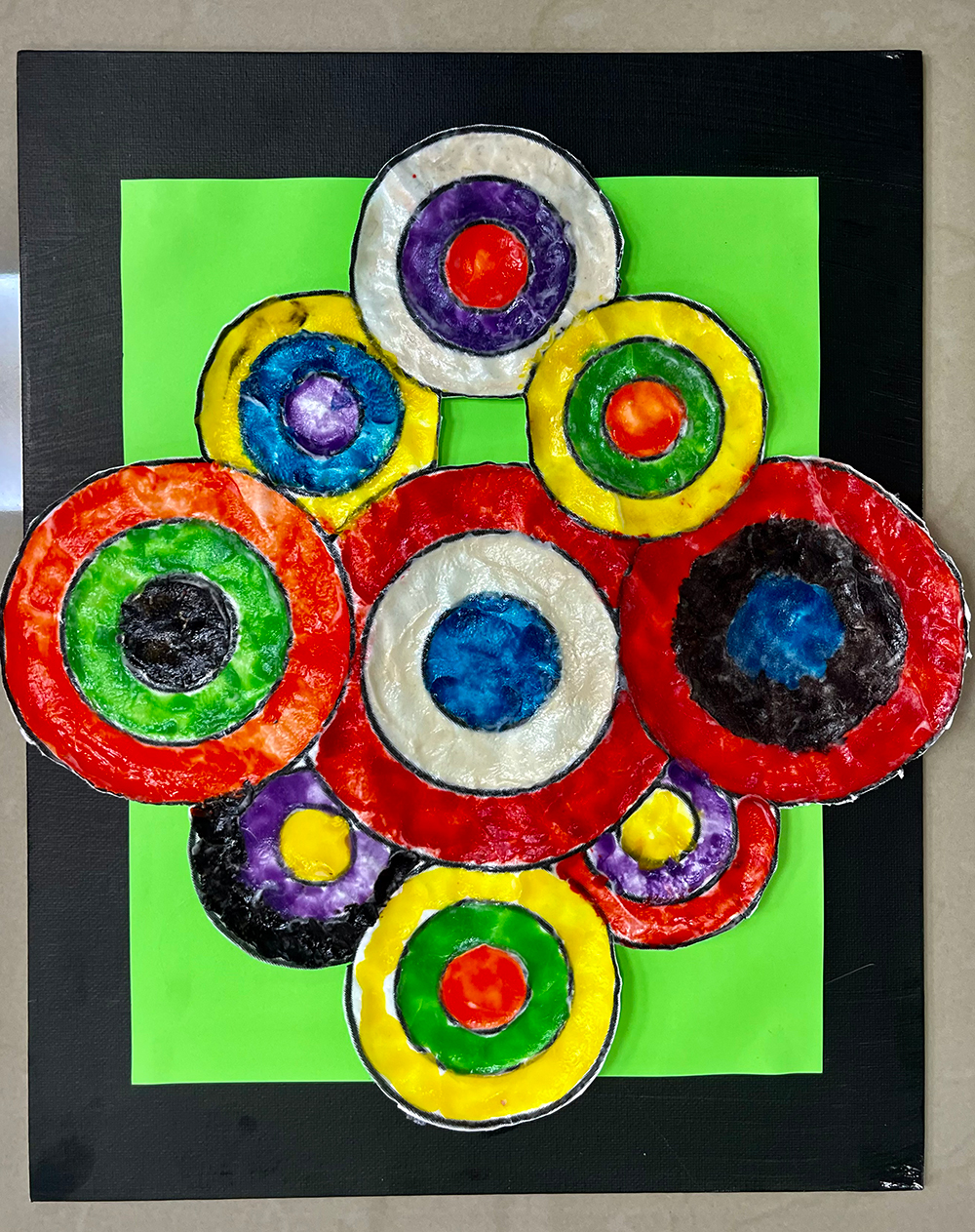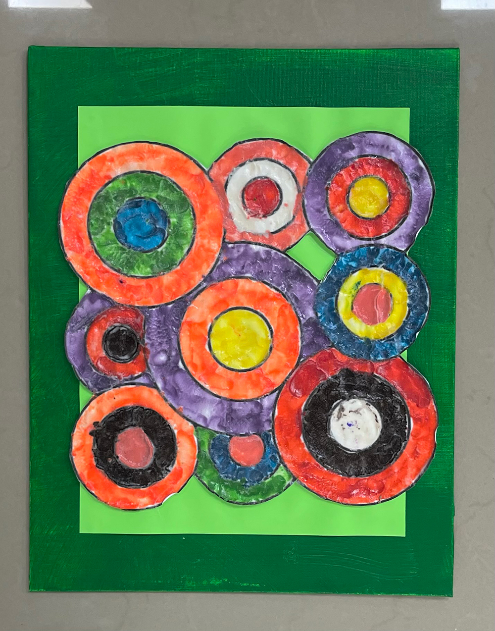 Kandinsky Circle, Acrylic on cardboard green on yellow