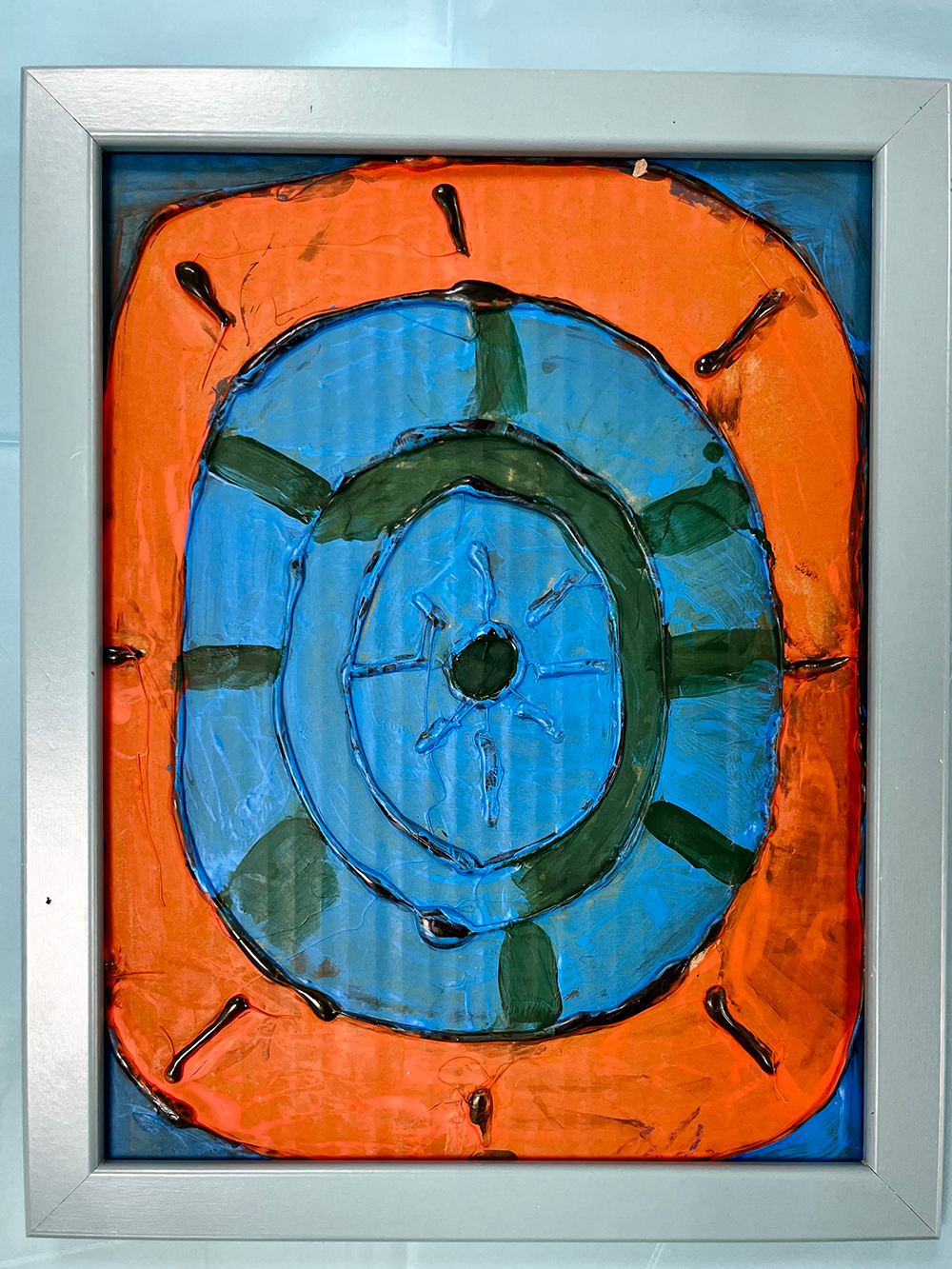 Kandinsky Series, Acrylic on cardboard orange on blue
