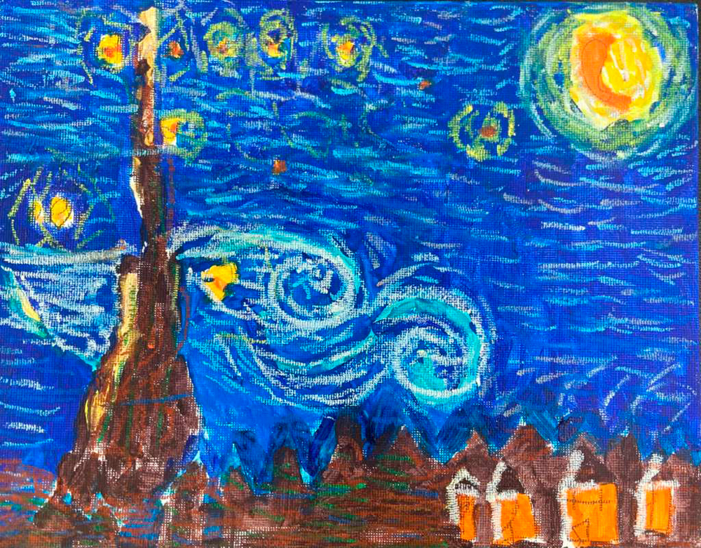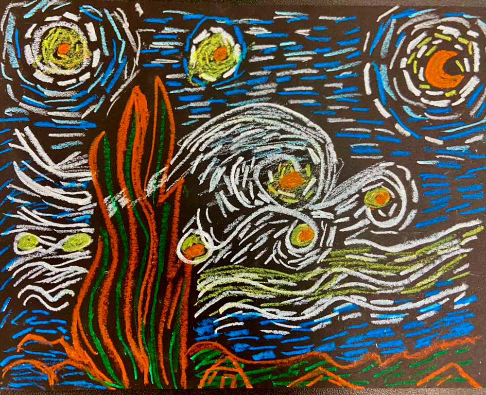 Starry-Night-KO-Oil-Pastel-on-Canvasboard